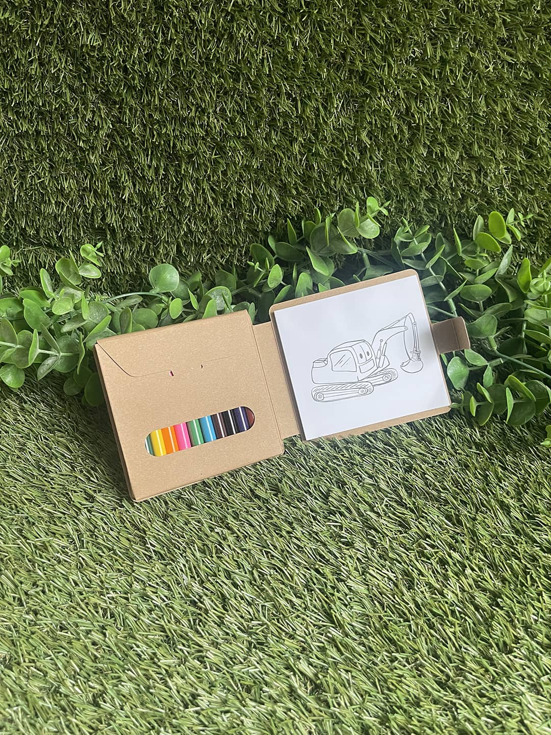 Mini bloc de dibujos personalizado con lápices de madera. Ideal para que los niños dibujen y coloreen mientras desarrollan su creatividad.
